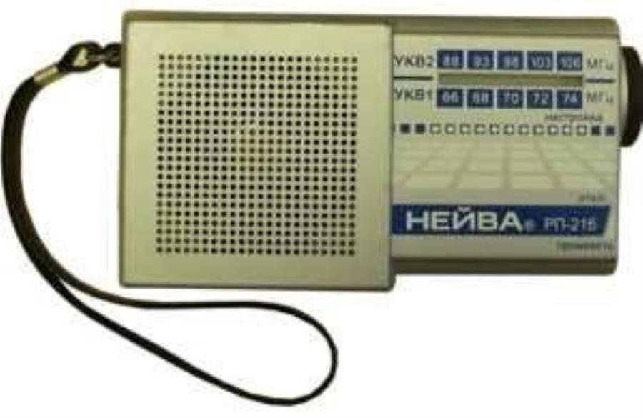 Приемник радиовещательный малогабаритный 145х75х49мм, диапазоны принимаемых частот УКВ1 65.8-74.0МГц, УКВ2 88.0-108.0МГц, питание 4.5В (3 элемента А316), максимальная выходная мощность 150 мВт, масса без источника питания 0.28 кг , возможность работы от сети 220В через блок питания (в комплект не входит), прием программ на встроенную телескопическую антенну, гнездо для подключения наушников, регулятор громкости, ручная настройка частоты. Рекомендуемый блок питания "Нейва-098-4,5"