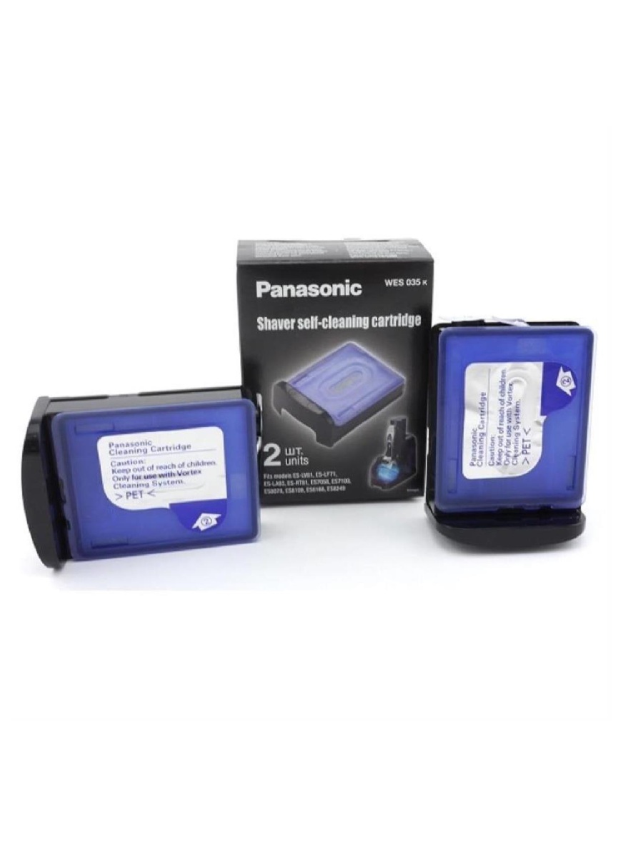 В комплекте Panasonic WES035K503 поставляются два очиститель-картриджа. С помощью данного аксессуара пользователь может быстро избавиться от остатков щетины, которые застряли в электробритве, а также осуществить дезинфекцию и смазку своего устройства.